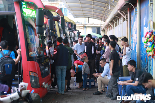 Các bến xe lớn của Hà Nội đều ghi nhận tình trạng đông đúc vào chiều 27/4. (Ảnh: Chí Hiếu)