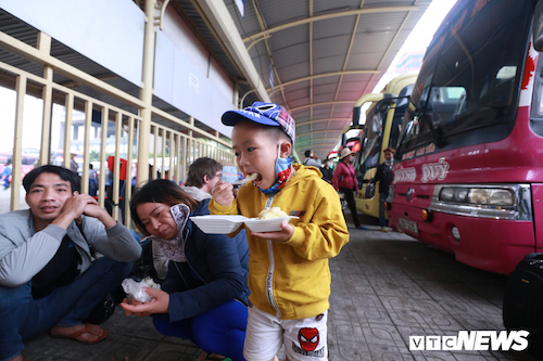 Old  Default Bến xe đông nghịt người trước dịp nghỉ lễ, ăn vội bánh mỳ chờ mua vé