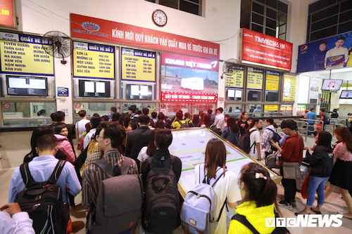 Ghi nhận của phóng viên tại bến xe Mỹ Đình vào cuối giờ chiều ngày làm việc cuối cùng trước kì nghỉ lễ 30/4, 1/5, lượng người đổ về bến ở mức cao, những quầy vé càng về chiều muộn lại càng trở nên quá tải. Đặc biệt là những tuyến xe đi Quảng Ninh, Lạng Sơn quầy vé lúc nào cũng rơi vào tình trạng hết vé.