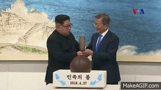 Tại tiệc của cuộc họp thượng đỉnh hôm 27/4, lãnh đạo Triều Tiên và Hàn Quốc đã tách lớp vỏ sô cô la hình cầu, cho thấy chiếc bánh có hình bán đảo Triều Tiên và các đảo mà cả Seoul và Tokyo đều đòi chủ quyền. Món tráng miệng, có tên ‘Mùa xuân của nhân dân’, thể hiện các hòn đảo được Nhật Bản gọi là Takeshima và Hàn Quốc gọi là Dokdo, nằm khoảng giữa hai nước láng giềng Đông Á trên Biển Nhật Bản, còn Seoul gọi là Đông Hải.
