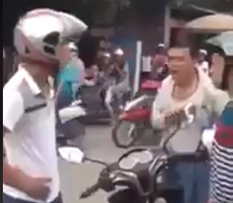 Thế mà người đàn ông trong video này tự xưng là cảnh sát rồi vẫy xe người đi đường phạt vi phạm nên bị bác ấy lớn tiếng phản đối phải cúi mặt bỏ đi.
