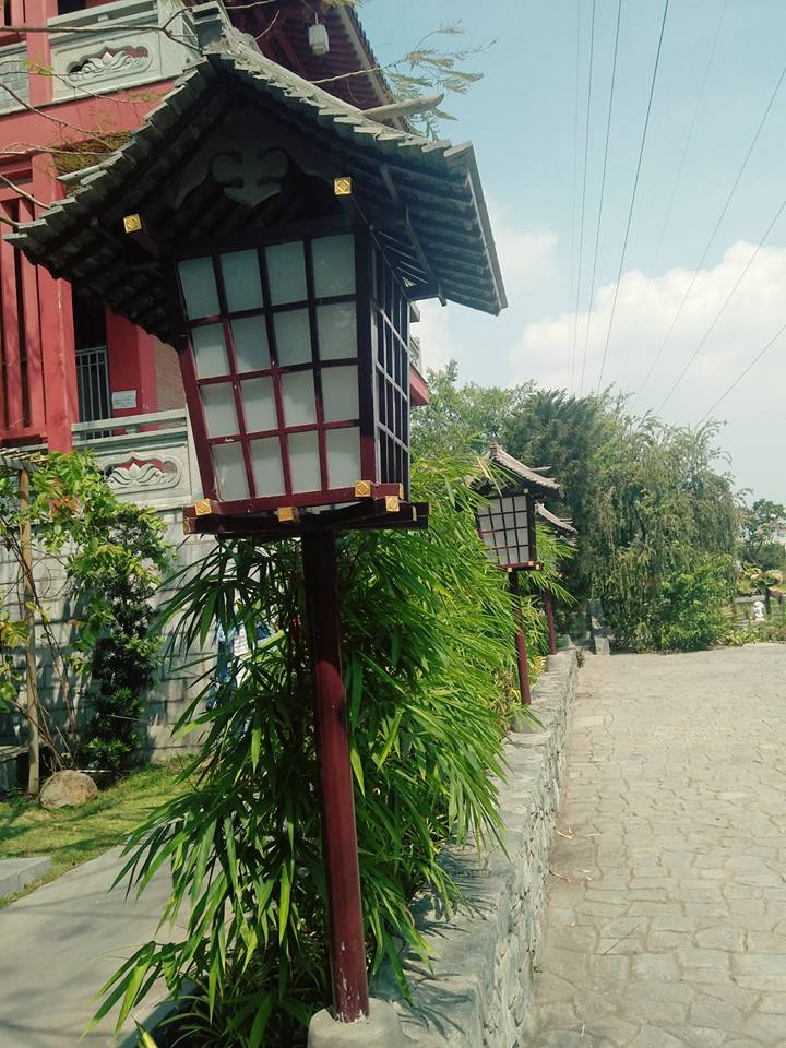 Quanh khuôn viên của chùa là những chiếc đèn làm bằng gỗ và giấy có hình lục giác, thường thấy trong các lễ hội hoặc ở lối đi cổng đền chùa của Nhật Bản.