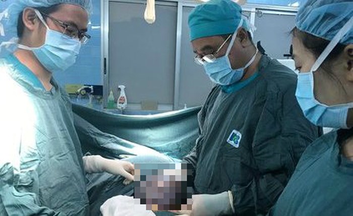 Bác sĩ Tiến cùng đồng nghiệp thực hiện ca mổ lấy khối u cho bệnh nhân tại bệnh viện Ung Bướu.