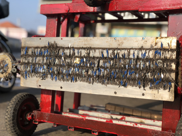Chiếc xe hút đinh tự chế của ông C. dính đầy đinh
