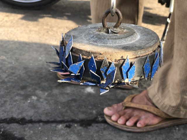 “Những loại đinh này được cắt từ mảnh tôn và thép hết sức sắc bén, chỉ cần găm nhẹ là thủng vỏ ngay, khi xe dính đinh dẫn vào tiệm là tụi nó phá để phải thay ruột, 10 xe dính đinh thì thay ruột cả 10”, ông C. tiết lộ.