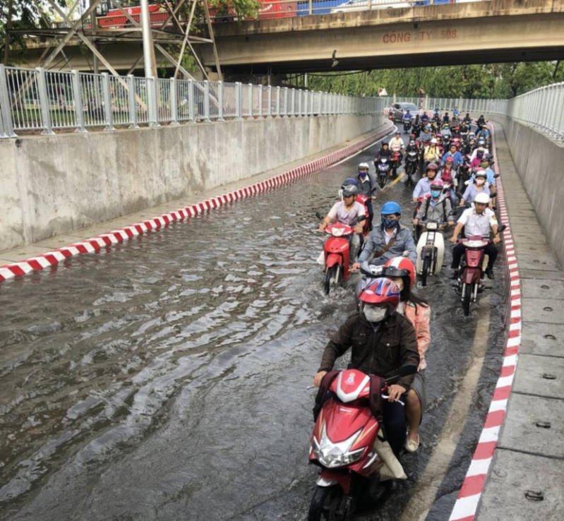 Đường chui Bình Triệu vừa khánh thành 30/4 đã ngập nước sau cơn mưa đêm 2/5.