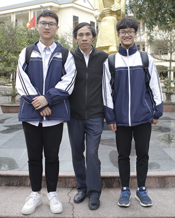 Long và Anh cùng thầy giáo hướng dẫn. Ảnh: Nguyễn Hải.