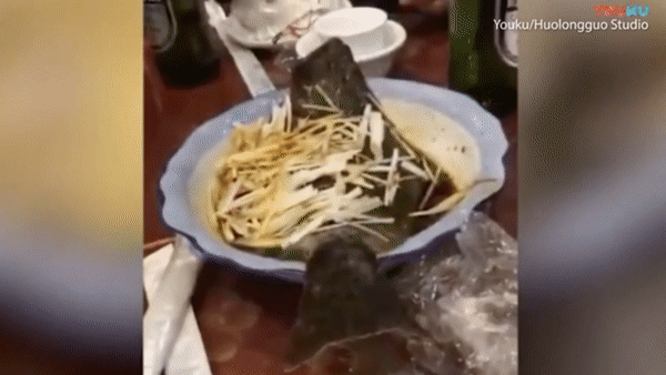 Nhiều thực khách đã không khỏi giật mình khi con cá bất ngờ nhảy ra khỏi đĩa. Theo đó, con cá đã được nấu chín và được khách đổ xì dầu lên để thưởng thức. Con cá bất ngờ nhảy bật lên không trung khiến ai cũng bất ngờ.