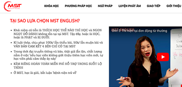 Trung tâm MST English nơi có giáo viên mạt sát học viên hoạt động không giấy phép. Ảnh chụp màn hình.