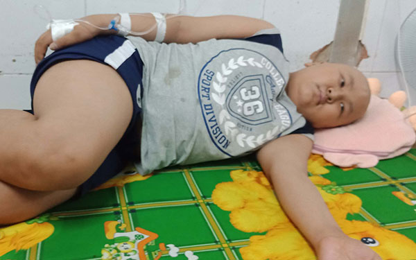 Chị Ánh vội đưa con đến bác sĩ tư siêu âm rồi đưa thẳng vào Bệnh viện Nhi Đồng 1. Tại đó, Tuấn được chỉ định phẫu thuật gấp vì khối u đã quá to. Sau phẫu thuật, bác sĩ cho biết khối u nặng 2,6kg, nếu không kịp thời đưa tới bệnh viện, khối u vỡ ra sẽ nguy hiểm tới tính mạng. Vết thương của con chưa khô miệng, chị nhận tin dữ đó là khối u thận ác tính.