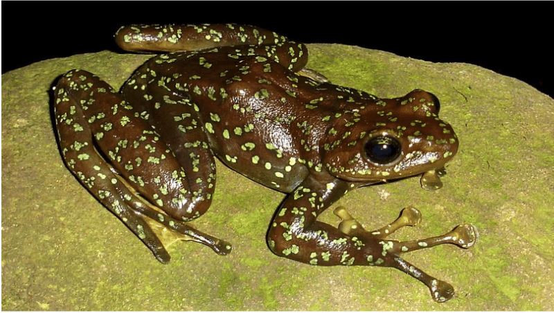 Ếch bám đá đốm vàng sống ven các suối, thác ở vùng núi rừng nhiều tầng, cây lớn ở độ cao lớn so với mực nước biển. Ảnh researchgate.