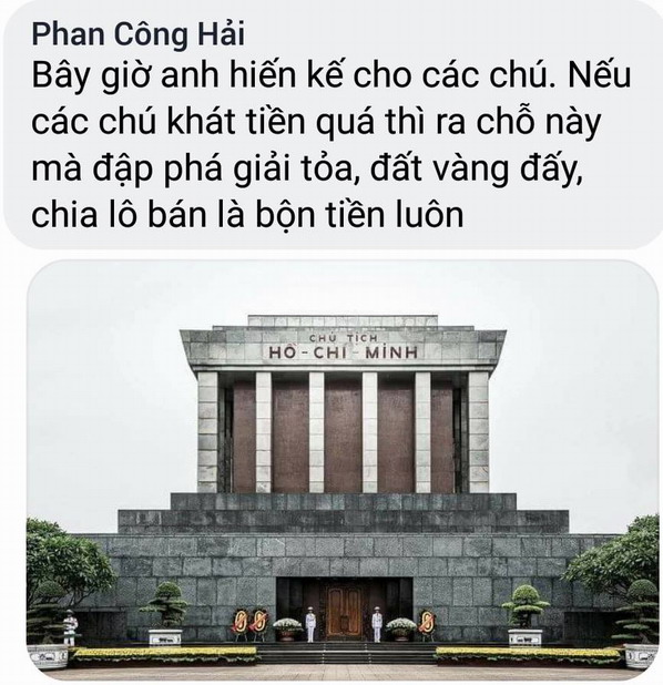 giải toả ba đình đem cái xác không của bác ra hoàng sa quăng xuống biển là xong chuyện.