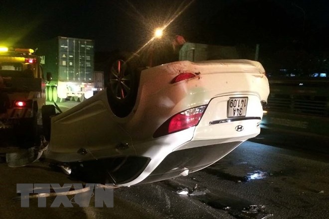 Hai xe đi cùng chiều hướng Hà Nội-Hải Phòng. Sau vụ va chạm chiếc xe ôtô con bị mất lái và lật ngửa trên đường, lái xe bị thương và đã được đưa vào Bệnh viện tỉnh Hải Dương.