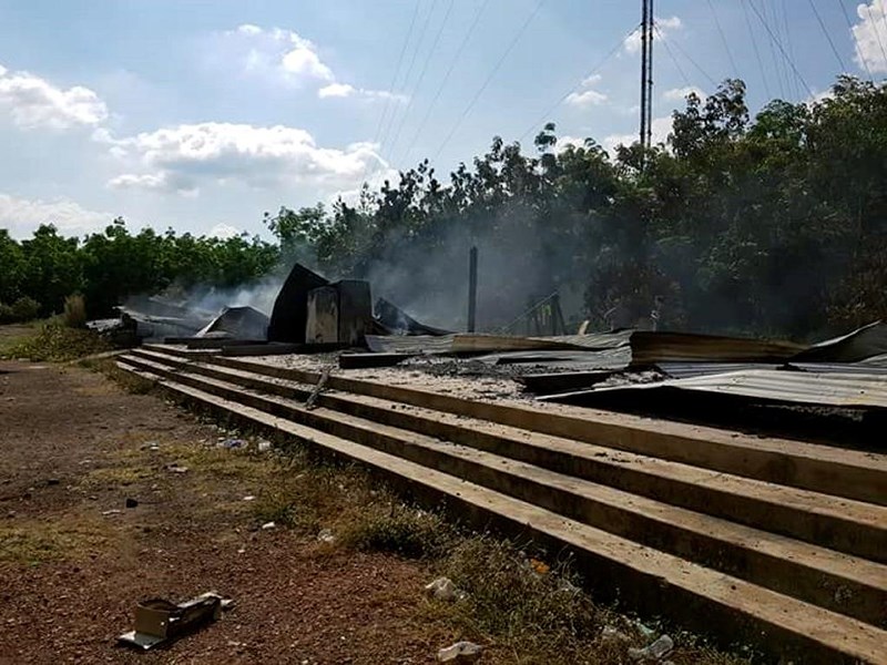 Trụ sở công ty cổ phần cao su Chư Prông-Stung Treng bị cháy rụi sau tiếng sét