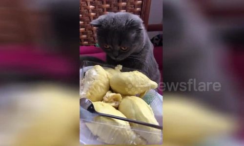 Niu Xiaoyao, sống ở thành phố Bắc Kinh, cho biết hôm 5/5 cô quyết định mời chú mèo cưng 3 tuổi Du Du thưởng thức món sầu riêng vì tò mò không biết phản ứng của nó thế nào. Theo News Flare, toàn bộ sự việc được Niu quay lại bằng điện thoại rồi sau đó chia sẻ lên mạng.