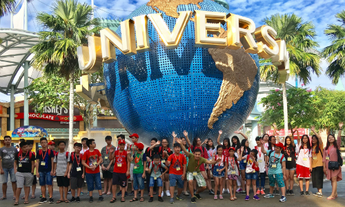 Thầy Lâm dẫn đoàn học sinh sang trại hè quốc tế Singapore năm 2017. Ảnh: NVCC