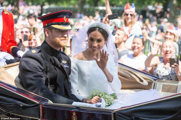 Đám cưới của hoàng tử Harry và công nương Meghan Markle đă khiến người dân nước Anh cảm thấy phấn khích. Sau những khoảnh khắc long trọng của hôn lễ, cặp đôi Harry và Meghan Markle được gặp gặp trở về nhà bằng xe mui trần. Cả hai mặc những trang phục b́nh thường và đeo kính sang chảnh. H́nh ảnh của họ khiến công chúng quư mến bởi sự gần gũi và thanh lịch.