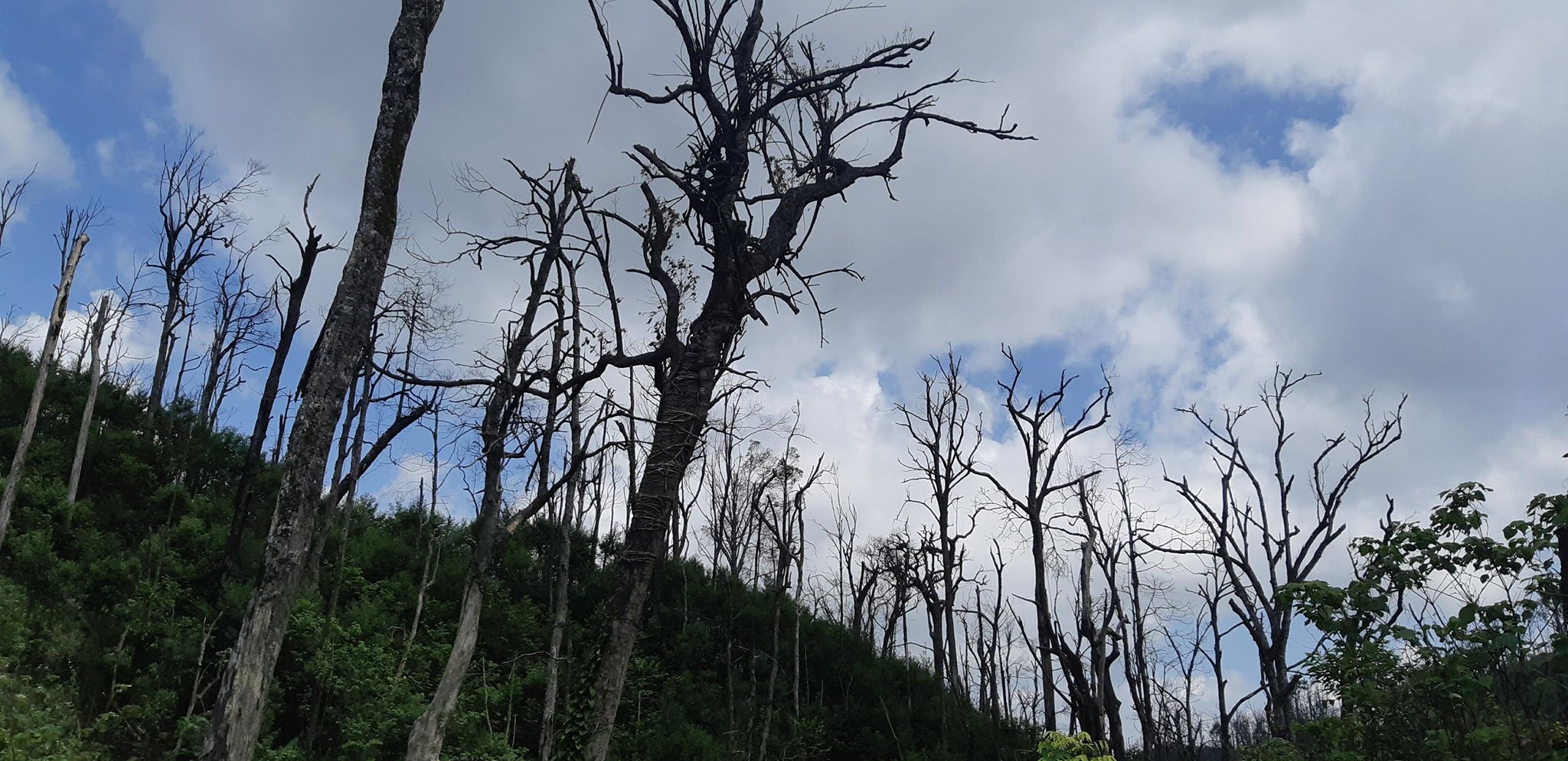 Cây cối bị chết khô tạo thành nghĩa địa cây trên đỉnh đèo Co Mạ.