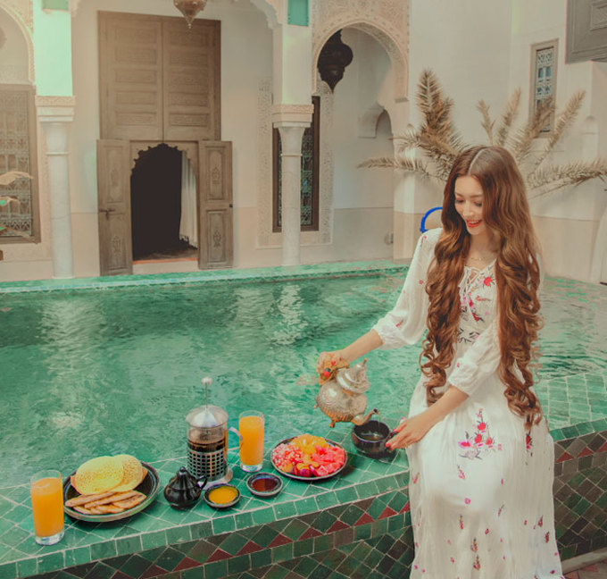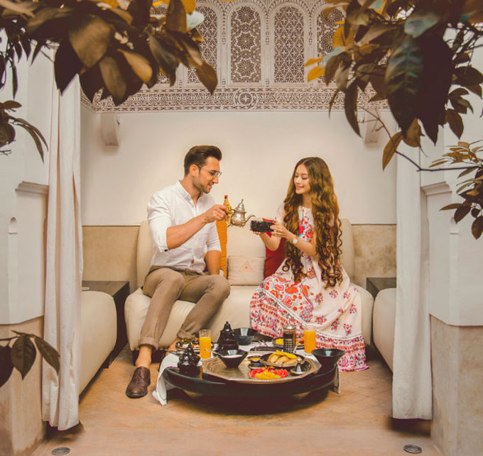 Sarah khiến nhiều người ngưỡng mộ vì có cuộc sống đáng mơ ước, những chuyến du lịch khắp năm châu bốn bể cùng người yêu điển trai. Bức ảnh trên được cả hai chụp khi du lịch tới Morocco.