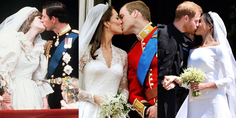 Meghan và Harry có một loạt những khoảnh khắc trao nụ hôn đáng nhớ trong đám cưới hoàng gia của họ. Trong khi Diana và Kate trao cho chồng mình nụ hôn đầu tiên sau đám cưới với tư cách là thành viên của gia đình hoàng gia trên ban công tại Cung điện Buckingham thì Meghan và Harry đã ghi lại khoảnh khắc gắn bó trên thềm bậc thang của Nhà nguyện St George.