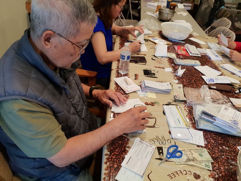 Ông An Nguyễn, thiện nguyện viên, cho biết: “Hằng tuần, chúng tôi đợi đông đủ mọi người rồi mới cùng mở phong bì một lúc. Phải cẩn thận như vậy vì có những bác lớn tuổi, không quen sử dụng ngân phiếu nên có dư đồng nào thì gởi tiền mặt giúp hội ngay.”