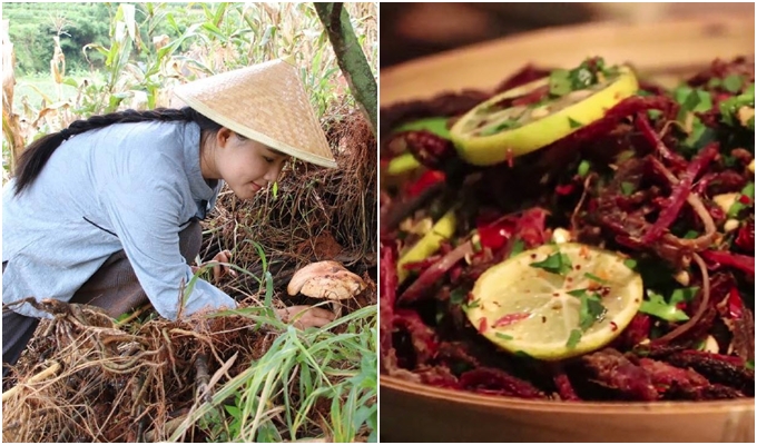 Thịt bò, trâu gác bếp là món ăn khá phổ biến của dân tộc thiểu số miền Bắc. Khi mới nếm thử, nhiều người không quen bởi mùi khói quá nồng, tuy nhiên nếu ăn thử vài lần, bạn có thể cảm nhận được vị ngọt dễ gây nghiện của thịt. Chính vì vậy mà món ăn này được liệt vào hàng đặc sản ở đây. Để làm được món ăn này, người dân phải dùng thịt trâu hoặc bò tươi vừa mới mổ, ướp gia vị và gác ngay bếp củi của mình hàng tháng trời cho bám mùi khói rồi mới mang ra sử dụng. Tuy nhiên với sự hướng dẫn của Điền Tây Tiểu Ca - cô gái Trung Quốc chuyên giới thiệu món ăn truyền thống vùng núi Vân Nam, bạn chỉ mất khoảng hai ngày cho món nhắm này.