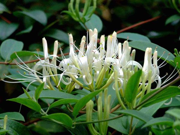 Hoa cây kim ngân mới nở có màu trắng tinh, sau vài ngày lại ngả sang màu vàng óng, vì thế mà trên cành luôn có 2 màu hoa thu hút. Không những có hoa thơm màu sắc rực rỡ, cây kim ngân hoa còn là vị thuốc quý trong Đông y.