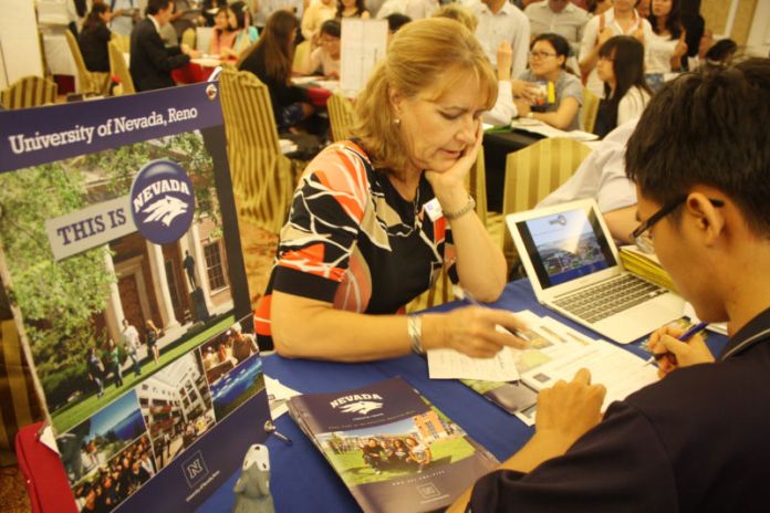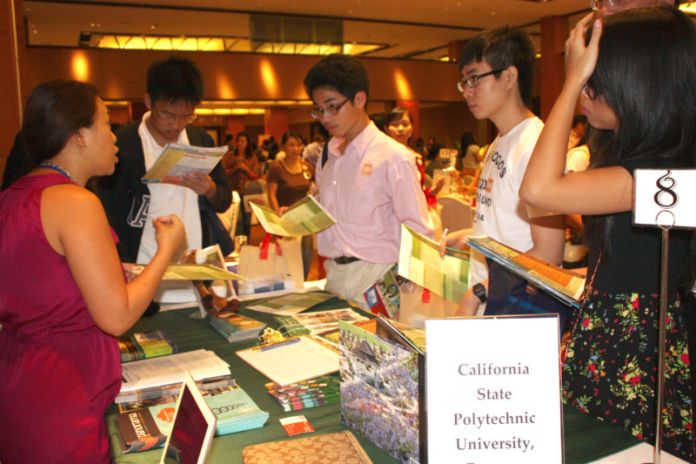 Học sinh Việt Nam tiếp xúc với đại diện trường đại học Mỹ trong một hội thảo giáo dục tại Sài G̣n. (H́nh minh họa: Quốc Dũng/Người Việt)