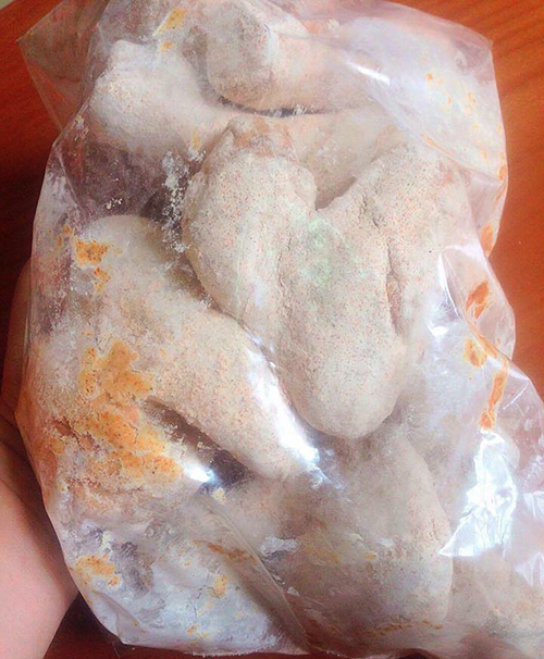 - Trộn đều hỗn hợp gồm 50 gr bột chiên gà giòn với 1-2 thìa bột năng và 1 thìa ớt bột, sau đó cho vào túi zíp. Bỏ gà ướp ra xếp vào túi. Lắc mạnh tay để bột dính hết vào gà.