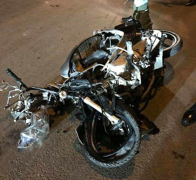 Chiếc xe máy của nạn nhân hư hỏng nặng. Ảnh: Bạn đọc cung cấp