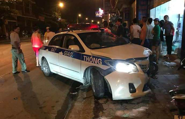 Vụ va chạm liên hoàn khiến xe CSGT văng lên vỉa hè trước một cửa hàng bán gas, đầu xe bị vỡ và chiếc xe máy của nạn nhân hư hỏng nặng. Riêng anh Hùng bị thương nặng được đưa đi cấp cứu và tử vong tại Bệnh viện Việt Nam - Thụy Điển Uông Bí.