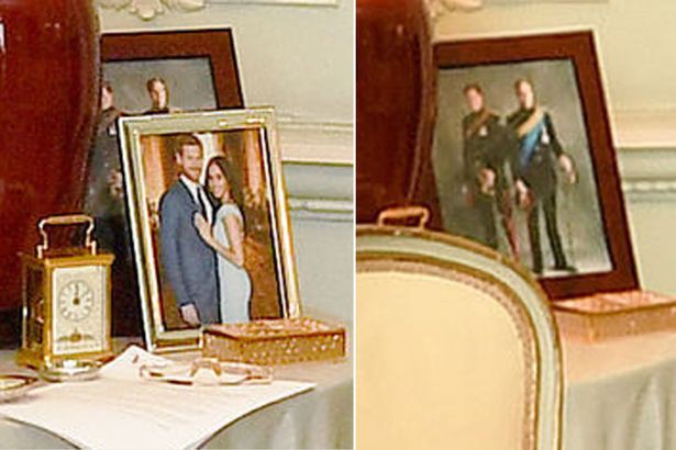 Tấm ảnh này được phát hiện đã có mặt trên bàn của Nữ hoàng vào ngày 30 tháng 5 vừa qua, nhưng sau đó đã biến mất khi công chúng có dịp nhìn thoáng qua bên trong căn phòng vào ngày 7-6. Bức ảnh ban đầu được đặt cùng với ảnh của Hoàng tử William và Hoàng tử Harry trong bộ quân phục của họ. Được biết, bức ảnh kể trên của Hoàng tử Harry và Meghan cũng là hình ảnh đầu tiên của cặp đôi này được trưng bày ở điện Buckingham. Vị trí bày biện bức ảnh là căn phòng mà Nữ hoàng thường sử dụng để chào đón khách mời cấp cao hay tổ chức các cuộc họp thường xuyên với Thủ tướng Anh và Hội đồng tư pháp.