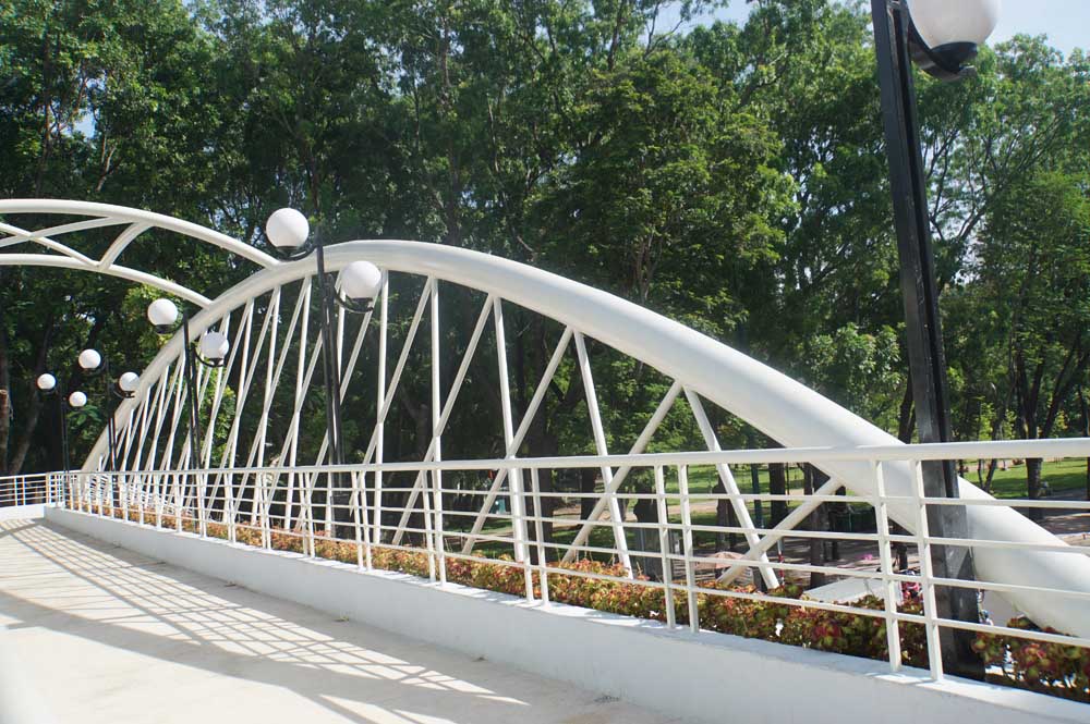 Vòm thép trang trí trên cầu khá bắt mắt.