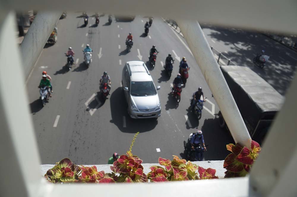 Người dân vui mừng khi có cầu đi bộ đảm bảo an toàn giao thông, tuy nhiên khi biết kinh phí xây 11,6 tỷ đồng họ khá sốc. Trong ảnh, ông Nguyễn Văn Tiến (62 tuổi, ngụ quận Tân Bình) dẫn cháu đi bộ qua cầu vượt.