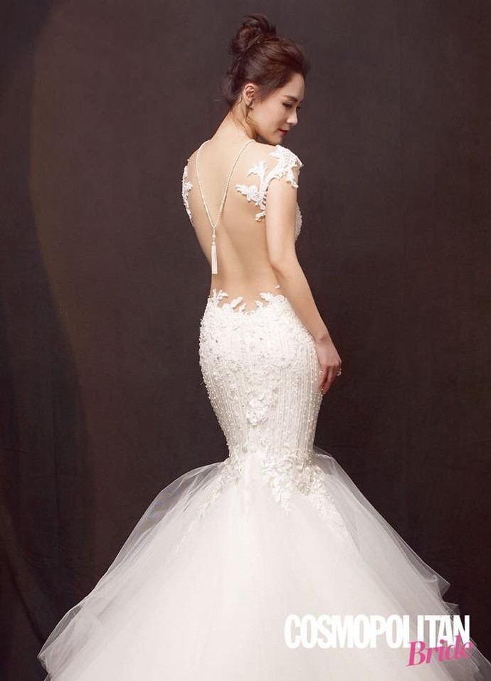 Vietbf.com - Nữ diễn viên Chung Hân Đồng diện chiếc váy cưới đuôi cá trắng tinh khôi lại khoe trọn vẹn tấm lưng trần nuột nà và vòng eo thon gọn, khiến dân tình phải xuýt xoa với nhan sắc như không hề thay đổi suốt nhiều năm qua trong hình ảnh mới trên tạp chí Cosmopolitan Bride.