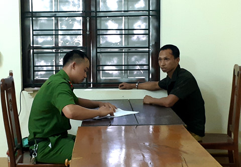 Đối tượng Doanh đang lấy lời khai tại cơ quan công an