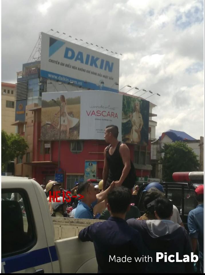 Đó cũng là lúc mình chụp được hình ảnh, anh ấy với tay, kêu mọi người hãy tiếp tục tiến lên! 😞 . Chừng 2' sau, Will bị xe công an chở đi cùng 3-4 người nữa!