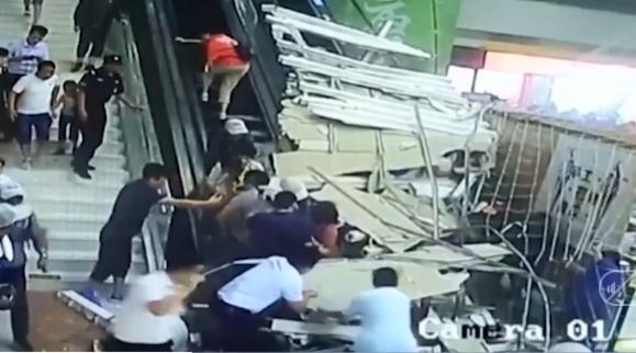 Khi chiếc thang cuốn đang chạy thì một số người đã nhận ra vấn đề bên trên trần nhà, ngay lúc đó, họ lập tức chạy nhanh ra khỏi thang, một số người né sang một bên để tránh tấm trần nhà rơi xuống người. Tuy nhiên, có vài người thì không thể tránh khỏi nên đành dơ tay lên đỡ khi mảng tràn nhà rơi xuống đầu.