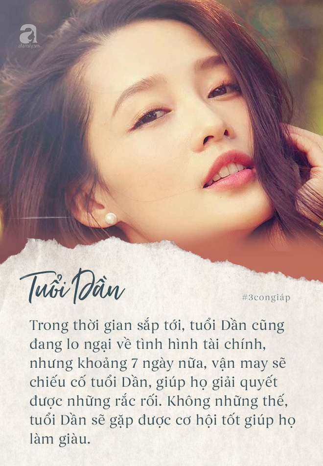 Trong thời gian sắp tới, tuổi Dần cũng đang lo ngại về tình hình tài chính của mình, nhưng khoảng 7 ngày nữa, vận may sẽ chiếu cố tuổi Dần, giúp họ giải quyết được những rắc rối. Không những thế, tuổi Dần sẽ gặp được cơ hội tốt giúp họ làm giàu. Việc cần làm nhất là tuổi Dần cần phải tỉnh táo quan sát xung quanh, nắm bắt đúng thời ca và tiến về phía trước, dự kiến cuối năm sẽ tạo dựng được khối tài sản đáng mơ ước.