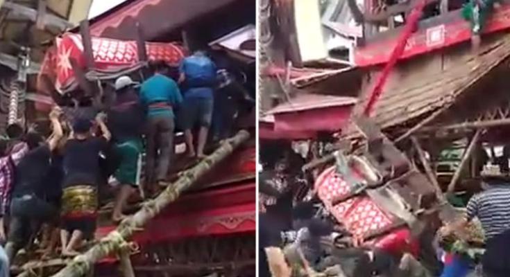 Tờ Guardian (Anh) đưa tin vụ việc xảy ra tại quận Bắc Toraja, đảo Sulawesi ngày 15/6. Ông Samen Kondorura (40 tuổi) đã khiêng quan tài của mẹ qua chiếc thang tre lên lakkian – chòi cao nơi người dân tộc Torajans trên đảo Sulawesi thường đặt người quá cố trước khi cử hành lễ tang truyền thống. Trong quá trình này, chiếc thang tre đột nhiên sập khiến chiếc quan tài rơi thẳng vào ông Kondorura.