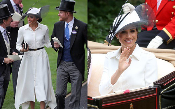 Trước khi về một nhà với Hoàng tử Harry, Meghan Markle đã bị nhiều người (trong đó có cả người chị ruột không mấy thân yêu của mình) nghi ngờ rằng sẽ không hòa hợp được với gia đình Hoàng gia nhà chồng. Trái ngược với các suy đoán này, dường như Meghan đã làm rất tốt và lấy lòng được cả với những người khó tính nhất bên nội tộc. Bằng chứng mới nhất cho sự hòa hợp này chính là những hình ảnh mới của gia đình Hoàng gia trong sự kiện Royal Ascot năm nay. Xuất hiện bên người chồng điển trai và lịch lãm trong Âu phục truyền thống, Meghan bận một thiết kế trắng tinh tế của nhà mốt Givenchy cùng chiếc mũ dress-code của sự kiện.