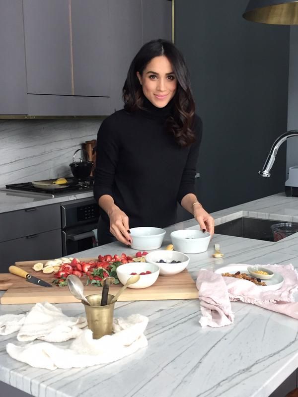 Từ khi còn đóng phim truyền hình Suits, Meghan đã duy trì thói quen bắt đầu ngày mới với một cốc nước ấm pha chanh tươi. Thức uống này có tác dụng kích hoạt hệ tiêu hóa, bài tiết độc tố còn tích tụ trong ruột. Sau khi uống nước chanh ấm, cô thường dùng yến mạch ăn kèm chuối và mật hoa Agave - một chất làm ngọt dành cho người ăn kiêng.