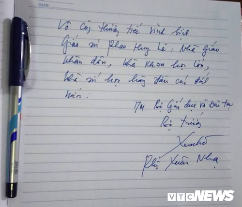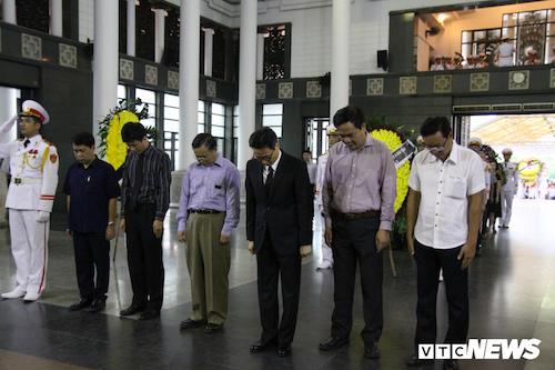 Nguyên chủ tích nước Trương Tấn Sang, Phó Thủ tướng Vũ Đức Đam, Bộ trưởng Bộ GD-ĐT Phùng Xuân Nhạ ghi số tang.