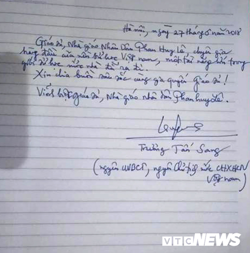 Những dòng vĩnh biệt cố Giáo sư, Nhà giáo Nhân dân Phan Huy Lê của nguyên Chủ tịch nước Trương Tấn Sang.