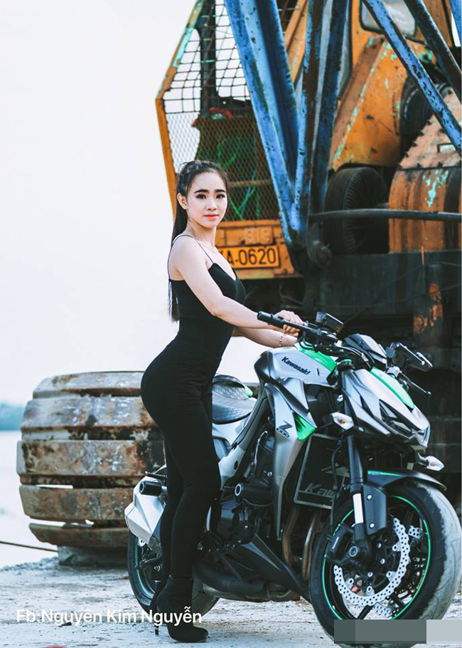 Nguyễn Kim Nguyên (23 tuổi) nổi tiếng bởi clip hơn 1 phút cưỡi "xế khủng" trên phố khoe đường cong hấp dẫn.