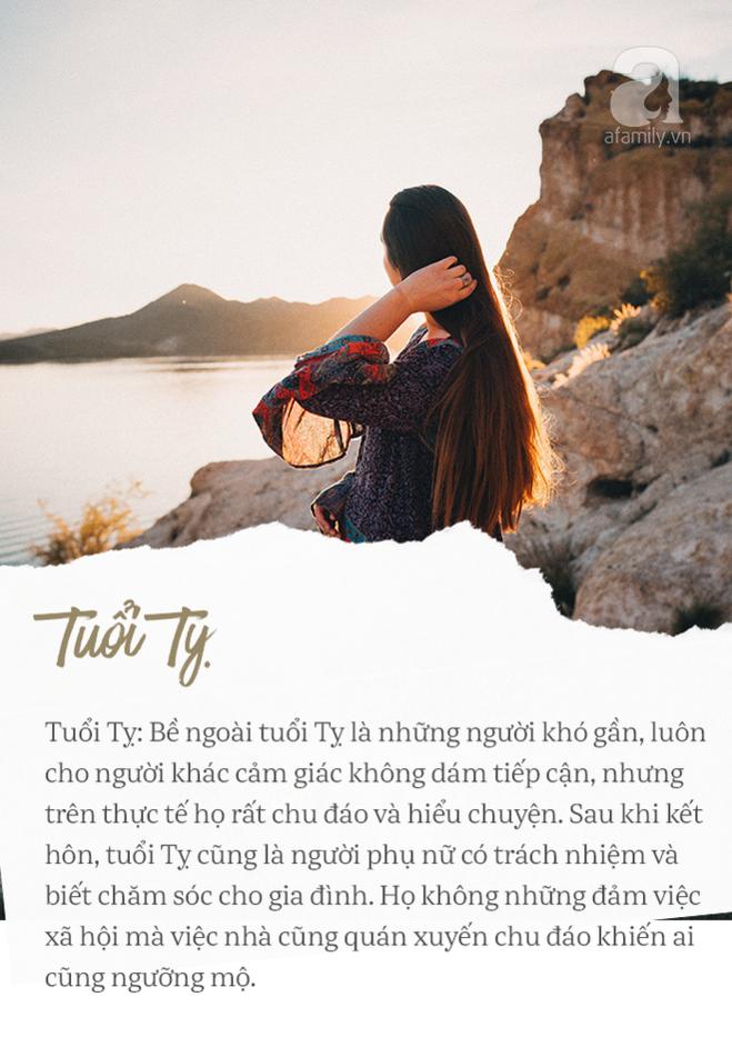 Sau khi kết hôn, tuổi Tỵ cũng là người phụ nữ có trách nhiệm và biết chăm sóc cho gia đình. Mọi thứ trong nhà đều do một tay tuổi Tỵ gánh vác, họ không những đảm việc xã hội mà việc nhà cũng quán xuyến chu đáo khiến ai cũng ngưỡng mộ. Trong một số gia đình, tuổi Tỵ là trụ cột chính, họ có tiếng nói và biết sắp xếp mọi thứ một cách hoàn hảo. Nhìn chung, hậu vận tuổi Tỵ sẽ là một cuộc sống an yên, đầy đủ và an nhàn hưởng phước.