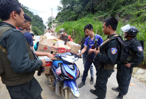 Cảnh sát kiểm tra hàng hoá của người dân trong bản. Ảnh: Bá Đô/VNE