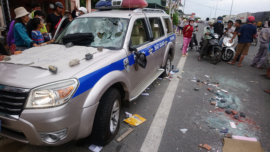 Xe CSGT bị đập nát ở TT.Phan Rí Cửa vào ngày 10.6