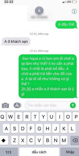 Anh bảo gọi bóng cười chơi cho nó vui vẻ. Mỗi đứa con gái chơi khoảng 2-3 quả bóng cười, còn anh hút bóng như thở oxi đến khi hóa đơn lên tầm 30 quả bóng. Gần 23 giờ thì anh đi vệ sinh. Em đợi lâu lâu, không thấy anh quay lại nên nhắn tin: “Anh đi đâu?”. Không thấy anh trả lời.