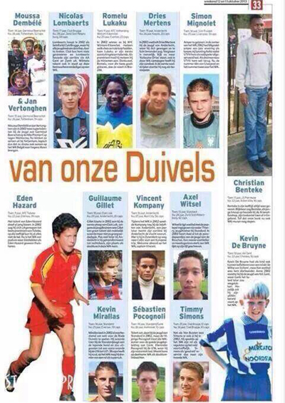 Những tài năng của Bỉ đi theo một lộ trình chung. Họ lớn lên khi giải vô địch Bỉ đã trở nên tồi tệ. Tất cả đều muốn ra nước ngoài thi đấu càng nhanh càng tốt. Eden Hazard sang Lille, Romelu Lukaku đến Chelsea và nhiều cầu thủ khác sang Ajax Amsterdam. Họ khoác áo những đội trẻ của Bỉ rồi sau đó lên đội tuyển quốc gia. Và cùng nhau, họ hứng chịu rất nhiều những thất bại thảm họa.